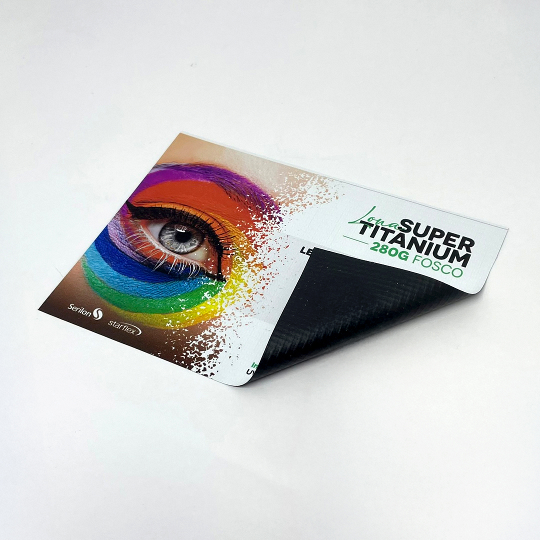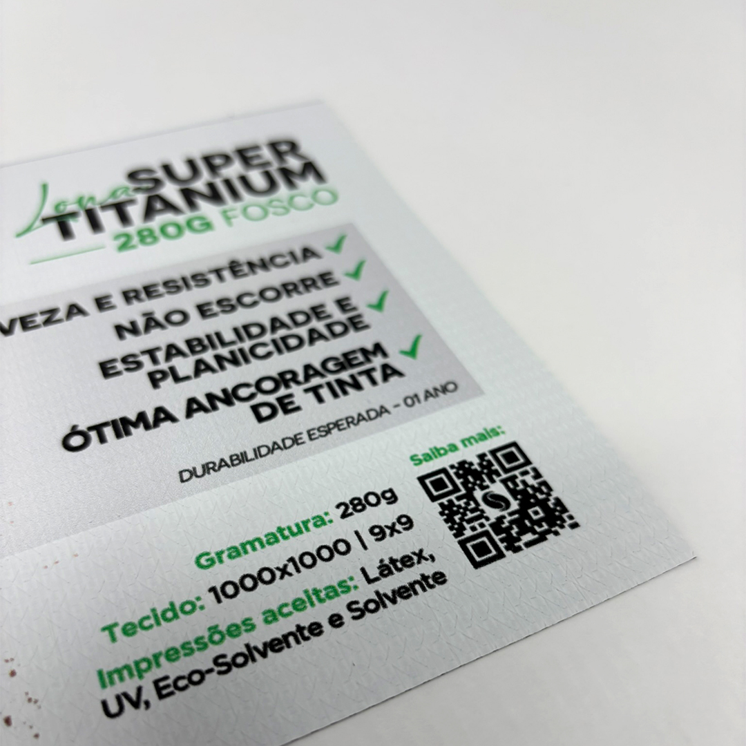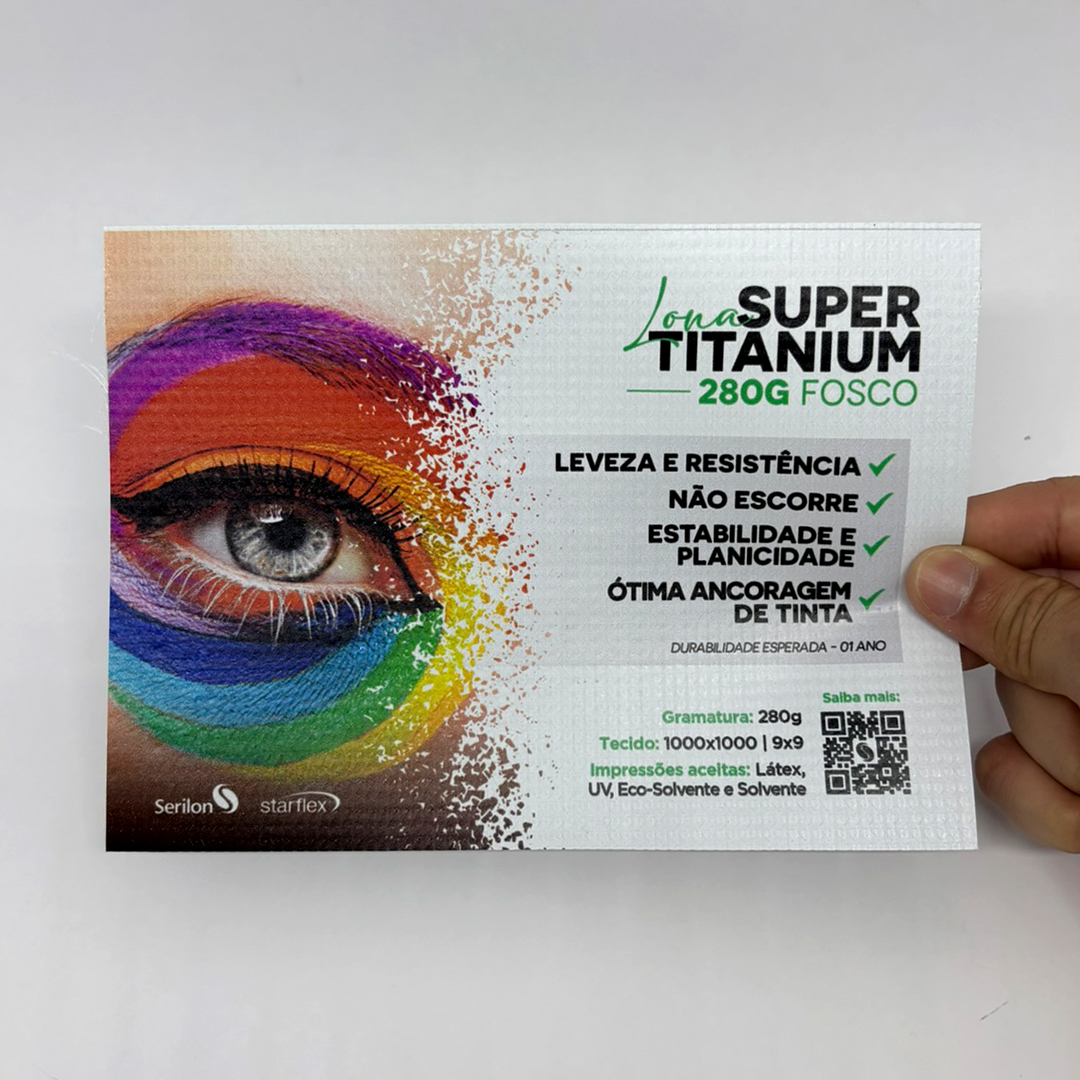 Com PVC 100% virgem e plastificantes de alta qualidade na composição, a Super Titanium entrega um acabamento técnico superior e ótima durabilidade em ambientes externos. A estabilidade dimensional do material proporciona excelente qualidade de impressão, com ancoragem de tinta eficiente e fidelidade de cores, ideal para impressões que exigem impacto visual e precisão.